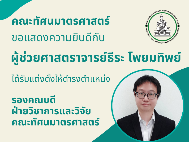 Previous article: ยินดีกับรองคณบดีคณะทัศนมาตรศาสตร์ (อ.โชติกา อ.นพดล) Prev Next article: ยินดีกับอาจารย์ฐิติกา เกาะหมาน Next