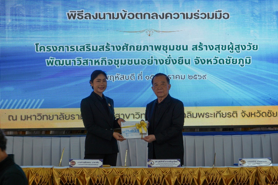 ผู้บริหาร อาจารย์ และนักศึกษา คณะทัศนมาตรศาสตร์ จัดกิจกรรมการดูแลสุขภพสายตาในชุมชน ในโครงการเสริมสร้างศักยภาพชุมชน สร้างสุขผู้สูงวัย พัฒนาวิสาหกิจชุมชนอย่างยั่งยืน จังหวัดชัยภูมิ ปีที่3 ซึ่งมหาวิทยาลัยรามคำแหงจัดขึ้น ภายในงานมีพิธีลงนามความร่วมมือ (MOU) ระหว่างมหาวิทยาลัยรามคำแหง กับองค์การบริหารส่วนจังหวัด และองค์การบริหารส่วนตำบล และมีการจัดกิจกรรมให้บริการวิชาการและวิชาชีพแก่ชุมชน